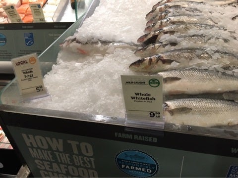 肉や魚のコーナーにて